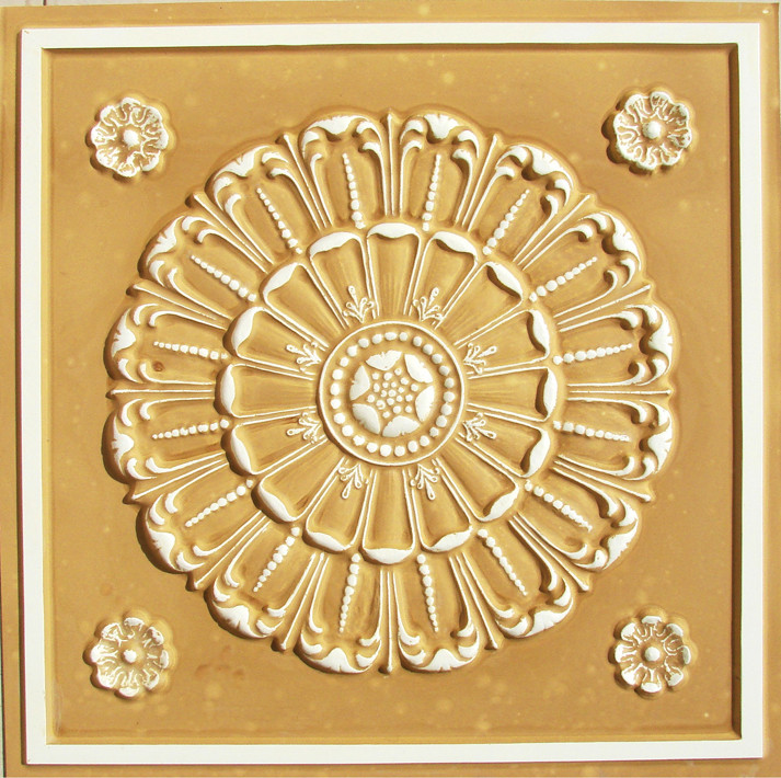 The Decorative Ceiling Tiles are manufactured from High Quality Polyvinyl Chloride (PVC) Sheets and are embossed in three dimensions, and then artwork is created with various colors, effects and process to create an outstanding look, and the combination of the above results in an extraordinary incomparable appearance. The Decorative Ceiling Tiles are available in convenient size of 2x2 foot and are available in 70+ beautiful designs ( new designs coming up every week ! ) and in hundreds of color shades and finishes, with combination of 2 or more colors gives you a look of a custom made ceiling for your project at fraction of the cost. You may enjoy Antique Metal Look, Wood-like effects that resemble real wooden grains, Metallic (Gold, Silver, Copper etc.), Pearl shine etc., all of which create stylish and unrivaled beauty, which cannot be possible to create with other ceiling tile products. The Decorative Ceiling Tiles can be fixed on any Hard Plain Surface with any good quality rubber base adhesive. These can be used in Homes, Offices, Hospitals, Schools, Hotels, Motels, Business complexes, etc. Their quality and economical value are exceptional. All the Designs Are Available In All The Colors!